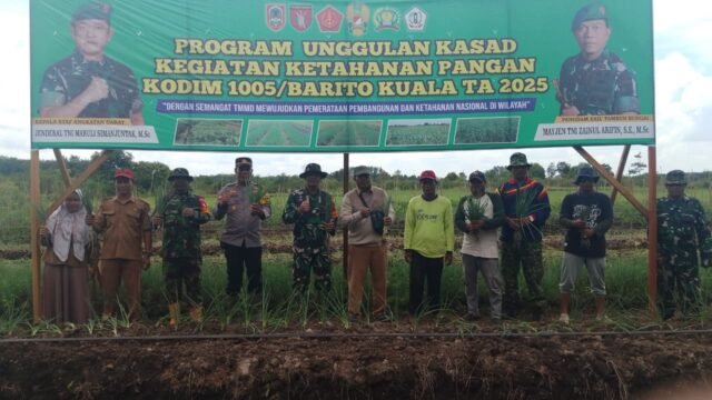 BARITO KUALA – Program TNI Manunggal Membangun Desa (TMMD) Ke-126 Kodim 1005/Barito Kuala kembali menegaskan perannya sebagai motor penggerak pembangunan di tingkat desa. Tidak hanya berfokus pada pembangunan infrastruktur, TMMD kali ini juga menitikberatkan pada peningkatan sektor ketahanan pangan yang menjadi bagian dari program unggulan Kepala Staf Angkatan Darat (KASAD).