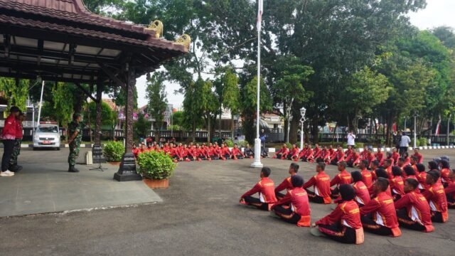 Batang,- Kepala Staf Kodim (Kasdim) 0736/Batang Kapten Inf Sariyono memberi motivasi kepada para anggota Pasukan Pengibar Bendera Pusaka (Paskibraka) Hari Ulang Tahun (HUT) Republik Indonesia (RI) ke-80 tahun 2025 tingkat Kabupaten Batang, bertempat di halaman rumah dinas Bupati Batang, Rabu (06/08/2025).