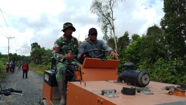 BARITO KUALA – Komitmen tinggi anggota Satgas TNI Manunggal Membangun Desa (TMMD) Ke-126 Kodim 1005/Barito Kuala terus terlihat di lapangan. Salah satunya datang dari Kopda Metia, prajurit yang tak kenal lelah mendampingi operator alat pemadat tanah di lokasi pengerasan jalan Desa Tumih, Kecamatan Wanaraya, Kamis (30/10).
