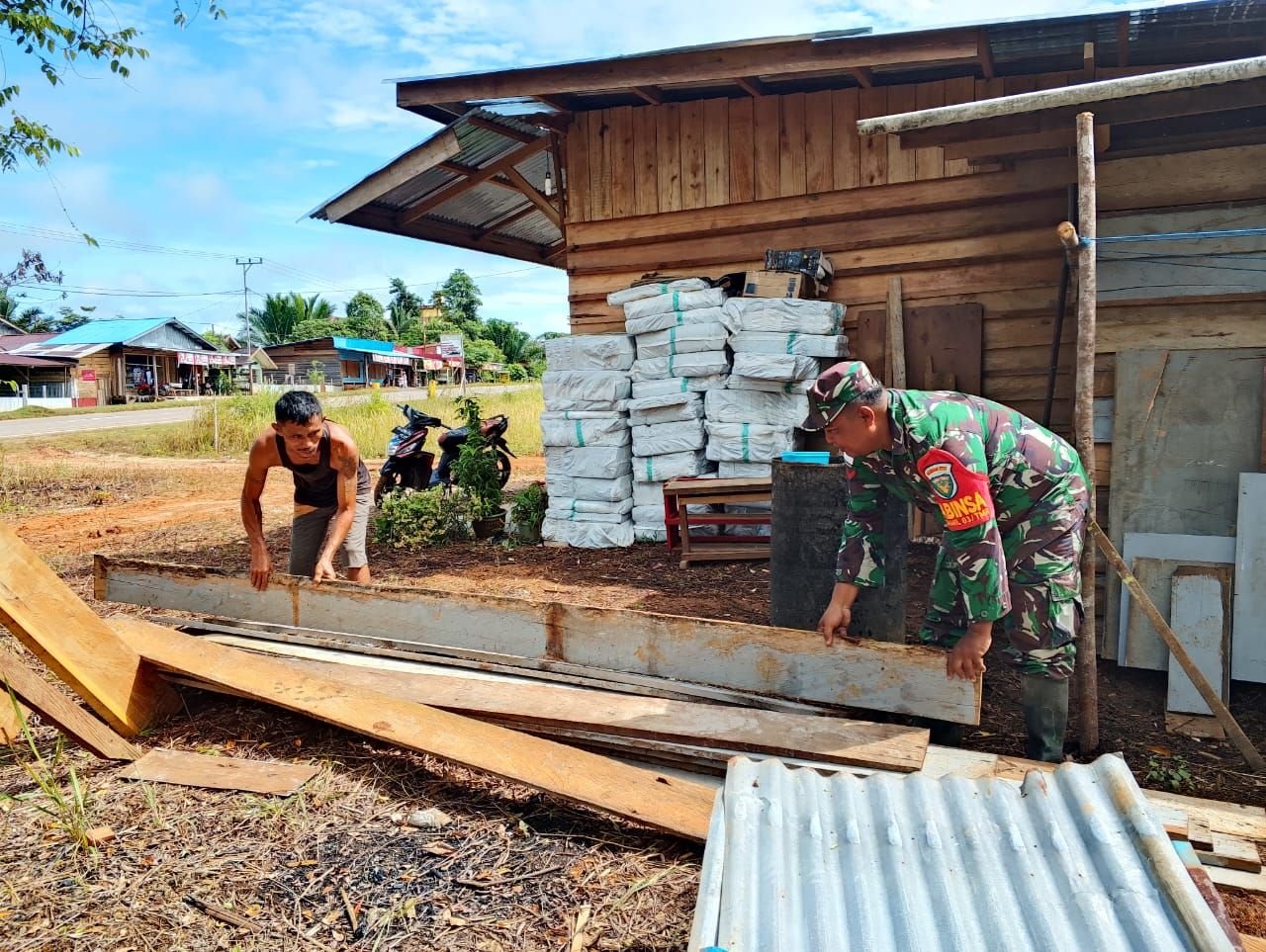 Boven Digoel – Dalam semangat gotong royong, Babinsa Kampung Mawan di Distrik Mandobo, Koptu Djosi Setiadi, bersama sejumlah rekannya melaksanakan program Karya Bakti (Karbak) pada hari Jumat, 26 Desember 2025. Kegiatan ini berlangsung di kediaman Bapak Fadil, seorang warga setempat, yang membutuhkan dukungan untuk pembangunan dapur dan tandon air di rumahnya.