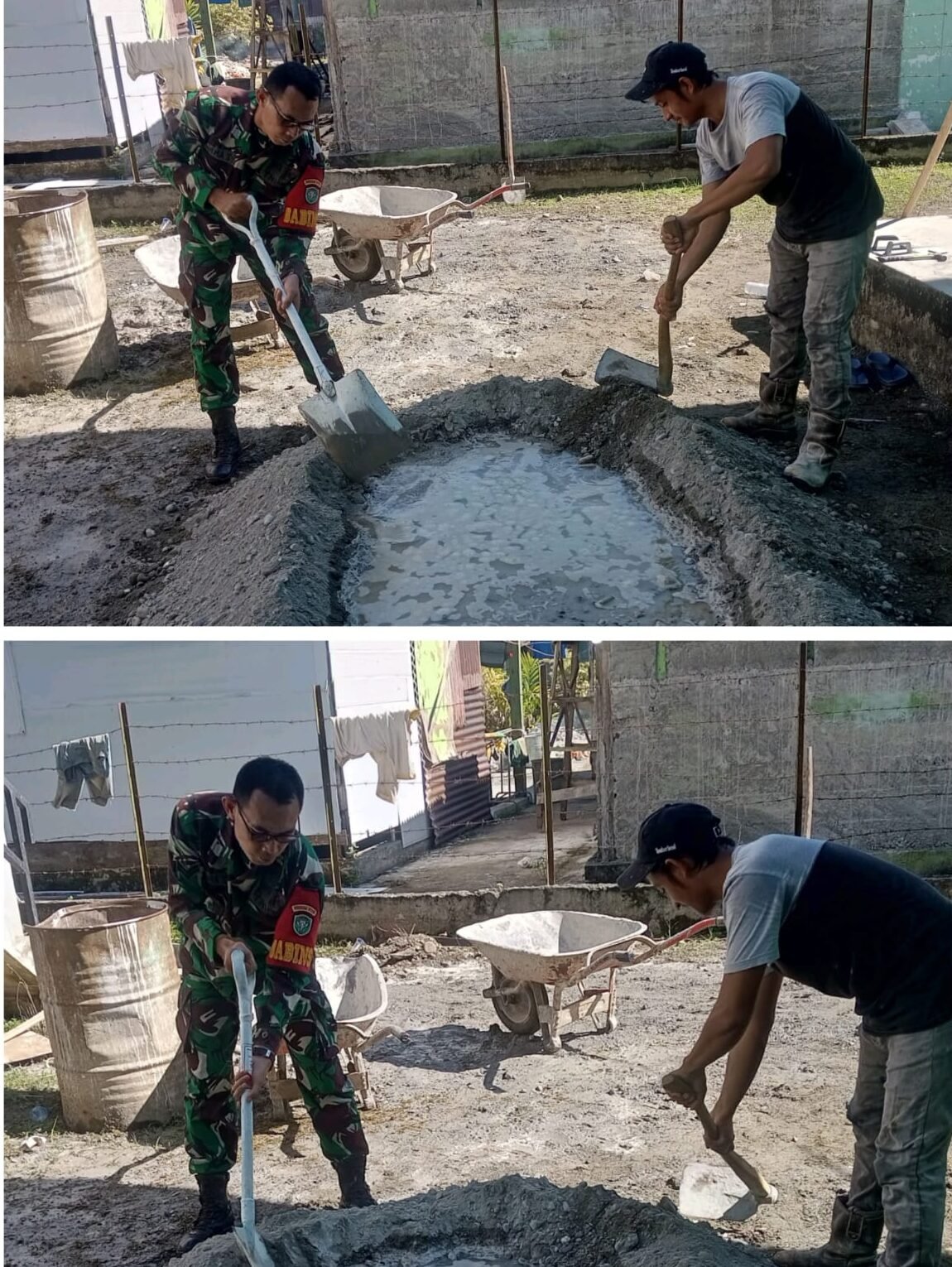 ACEH BARAT — Serda Darma, Babinsa Koramil 03/Kaway XVI Kodim 0105/Aceh Barat, menunjukkan wujud kebersamaan dengan masyarakat melalui tindakan nyata membantu warga dalam pekerjaan pembangunan rumah. Pada hari Senin (09/02/2026), Babinsa tersebut turut serta membantu mengaduk semen untuk proses plester rumah milik warga di Desa Kampung Mesjid, Kecamatan Kaway XVI, Kabupaten Aceh Barat.