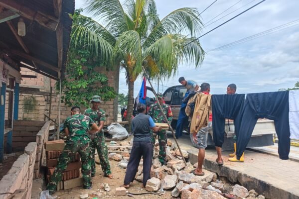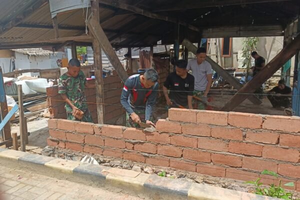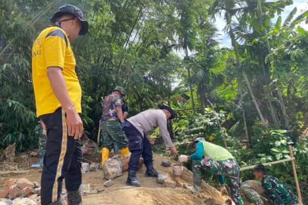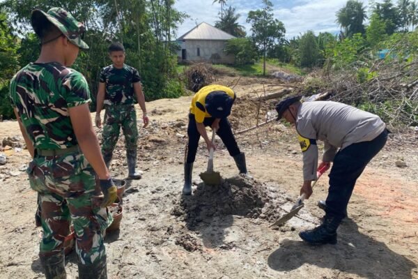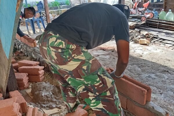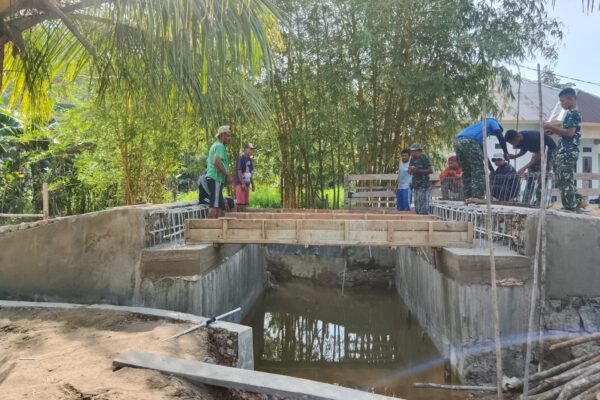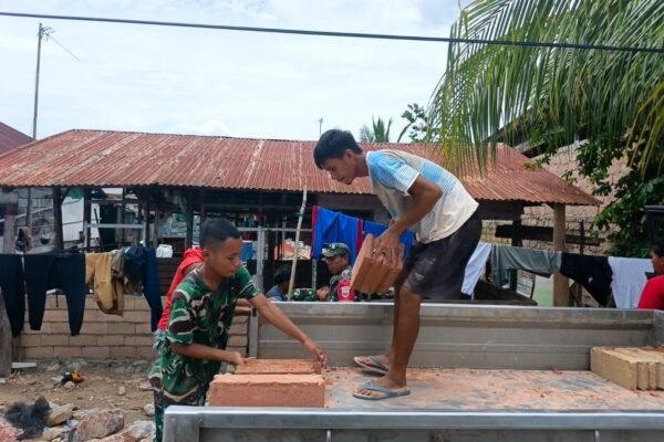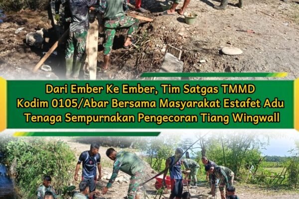 ACEH BARAT – Pembangunan tiang wingwall dalam program TMMD Reguler ke-127 Kodim 0105/Abar berlangsung penuh semangat kebersamaan di Desa Pasi Aceh, Senin (23/2/2026). Tanpa bergantung pada alat berat, proses pengecoran dilakukan dengan sistem estafet. Ember-ember berisi adukan semen berpindah tangan secara berantai hingga mencapai titik pengerjaan. Metode tersebut tidak hanya mempercepat pekerjaan, tetapi juga menciptakan…
