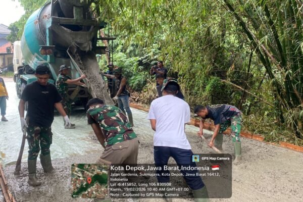 Depok – Proyek TNI Manunggal Membangun Desa (TMMD) Ke-127 Tahun Anggaran 2026 yang dilaksanakan oleh Kodim 0508/Depok menunjukkan kemajuan yang signifikan. Pada hari ke-9, yaitu pada Kamis, 19 Februari 2026, pengerasan jalan di kawasan GDC Sektor Gardenia Blok Q RT 03/07, Kelurahan Tirtajaya, Kecamatan Sukmajaya, Kota Depok, telah mencapai progres sebesar 44 persen. Jalan yang…