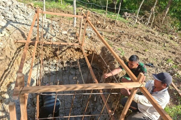 Kaur – Serka Yulian Syahri, anggota Babinsa dari Koramil 408-03/KT, bersama Tim Satgas Pembangunan Jembatan Gantung Kodim 0408/BS, menggelar pembesian abutmen dan melangsir material batu untuk proyek jembatan di Desa Cahaya Bathin, Kecamatan Semidang Gumay, Kabupaten Kaur, pada Jumat (17/4/2026). Kegiatan ini merupakan bagian dari upaya TNI dalam pembinaan teritorial dan menunjukkan kepedulian kepada masyarakat…
