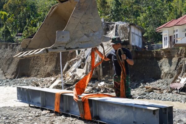 Nagan Raya – Komandan Detasemen Zeni Bangunan (Dandenzibang) 1/IM, Letkol Czi Azhari Lubis, turun langsung memimpin perakitan material Jembatan Bailey di Kecamatan Beutong Ateuh Benggalang, Kabupaten Nagan Raya, Rabu (24/12/2025). Perakitan Jembatan Bailey ini dilakukan sebagai upaya percepatan pemulihan infrastruktur pascabencana banjir yang melanda wilayah tersebut. Banjir sebelumnya mengakibatkan putusnya satu-satunya akses penghubung antara Kabupaten…