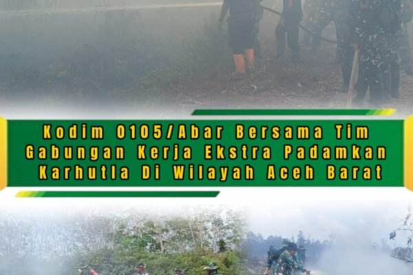 ACEH BARAT – Prajurit TNI dari Kodim 0105/Abar, Yonif 116/GS, dan petugas BPBD terus berkolaborasi dalam upaya pemadaman Karhutla yang terjadi di wilayah Kabupaten Aceh Barat, Kamis (29/1/2026). Penanggulangan kebakaran hutan dan pencemaran asap ini merupakan tugas mulia serta tanggung jawab bersama dalam upaya menyelamatkan ekosistem sekaligus mengurangi dampak terhadap aktivitas masyarakat. Dandim 0105/Abar, Letkol…