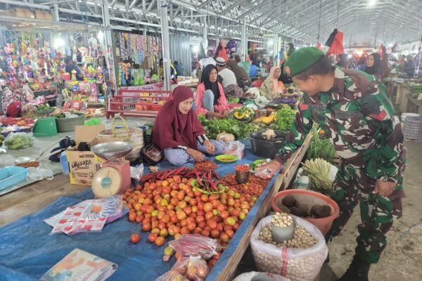 Pemantauan Ketersediaan dan Harga Bahan Pokok oleh Babinsa di Pasar Lawawoi