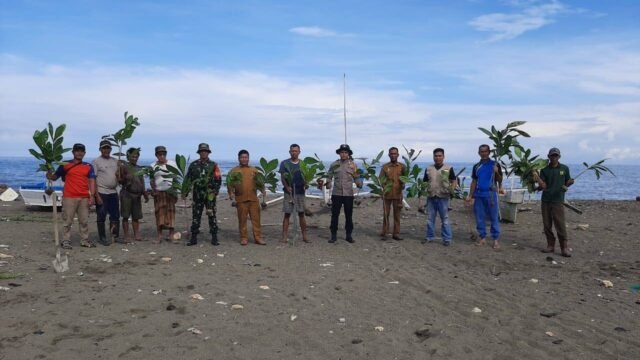 Pasangkayu – Dalam langkah nyata melestarikan lingkungan dan mencegah ancaman abrasi, Koramil-02 Bambalamotu, Kodim 1427/Pasangkayu, bersama perangkat Desa Randomayang dan masyarakat setempat menggelar Karya Bhakti penanaman pohon ketapang di Pantai Randomayang, Dusun Randomayang Dua, Desa Randomayang, Kecamatan Bambalamotu, Kabupaten Pasangkayu, Selasa (21/1/2025).