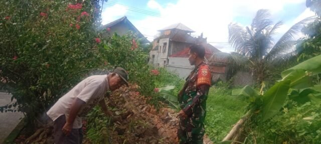 Klungkung, – Babinsa Banjarangkan bersama Bhabinkamtibmas dan BPBD kabupaten Klungkung melaksanakan peninjauan lokasi bencana alam tembok penyengker Pura Desa Bale Agung Pura Kangin Desa Adat Banjarangkan yang roboh, Jumat ( 27/12/24 ).