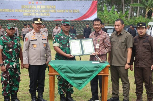 Batang,- Program Tentara Manunggal Membangun Desa (TMMD) Sengkuyung IV di Desa Wringingintung resmi ditutup dengan selesainya pembangunan jalan penghubung menuju tiga desa tetangga. Dengan selesainya pembangunan jalan penghubung, akan memudahkan akses warga Desa Beji, Posong dan Sembojo, menuju Kawasan Batang Industrial Park (BIP).