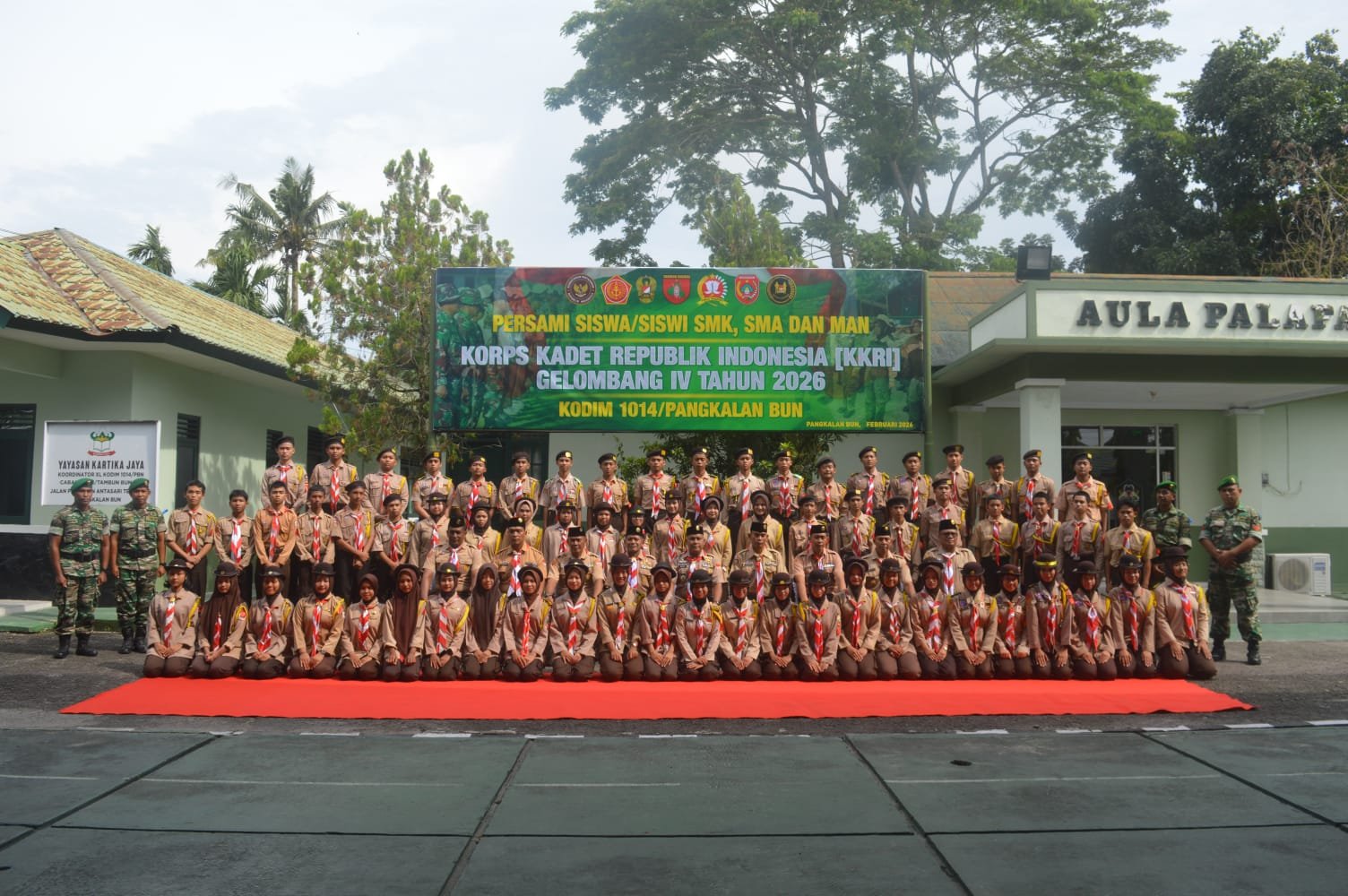 Kotawaringin Barat – Upacara Persami Korps Kadet Republik Indonesia (KKRI) Gelombang IV Tahun 2026 dipimpin oleh Komandan Kodim 1014/Pangkalan Bun (Pbn), Letkol Inf Makin, S.Sos., M.I.P. Kegiatan tersebut berlangsung pada Jumat, 27 Februari 2026, pukul 13.15 WIB, di Markas Kodim 1014/Pbn yang terletak di Jalan Pangeran Antasari No. 15, Kelurahan Raja, Kecamatan Arut Selatan, Kabupaten Kotawaringin Barat.