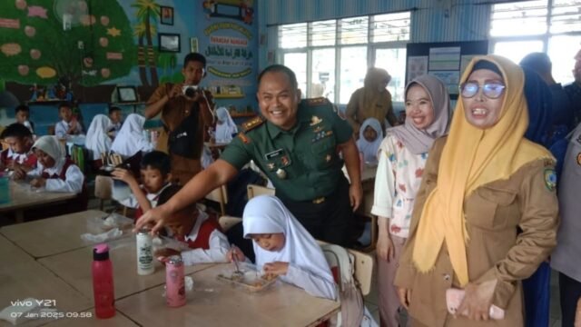 Maros – Komandan Kodim (Dandim) 1422/Maros, Letkol Arm Nikolas Sirilus, bersama Forum Koordinasi Pimpinan Daerah (Forkopimda) Kabupaten Maros memantau secara langsung pelaksanaan program makan bergizi gratis pada hari kedua di SDN 24 Batangase, Kecamatan Mandai, Kabupaten Maros, Selasa (7/1/2025).