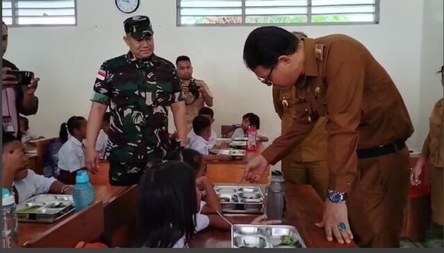 NTT – Kupang – Dandim 1604/Kupang, Kolonel Inf Wiwit Jalu Wibowo, bersama Penjabat Gubernur NTT, Andriko Noto Susanto, melakukan pemantauan langsung pelaksanaan penyaluran Makanan Bergizi di SDI Osmok, Kota Kupang, Kegiatan ini merupakan program Presiden RI untuk meningkatkan gizi anak-anak Bangsa termasuk di Kupang Nusa Tenggara Timur sekaligus mendukung upaya pengurangan angka stunting di wilayah Kupang. Senin (13/01/2025).