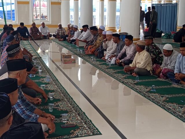 ACEH JAYA – Momentum peringatan hari kelahiran Nabi Besar Muhammad SAW dimeriahkan dengan kehadiran Danramil 06/Teunom Kodim 0114/Aceh Jaya, Kapten Inf Sofian, beserta anggota TNI dan jajaran Musyawarah Pimpinan Kecamatan (Muspika) Teunom. Mereka memenuhi undangan perayaan Maulid Nabi Muhammad SAW yang diselenggarakan di meunasah Babul Huda, desa Alue Ambang, Kecamatan Teunom, Kabupaten Aceh Jaya, Senin (15/09). Acara yang penuh makna ini juga dirangkai dengan kegiatan pemberian santunan kepada anak yatim setempat, menandai sinergi erat antara unsur militer, pemerintah daerah, dan masyarakat dalam mempererat tali silaturahmi serta menunjukkan kepedulian sosial.