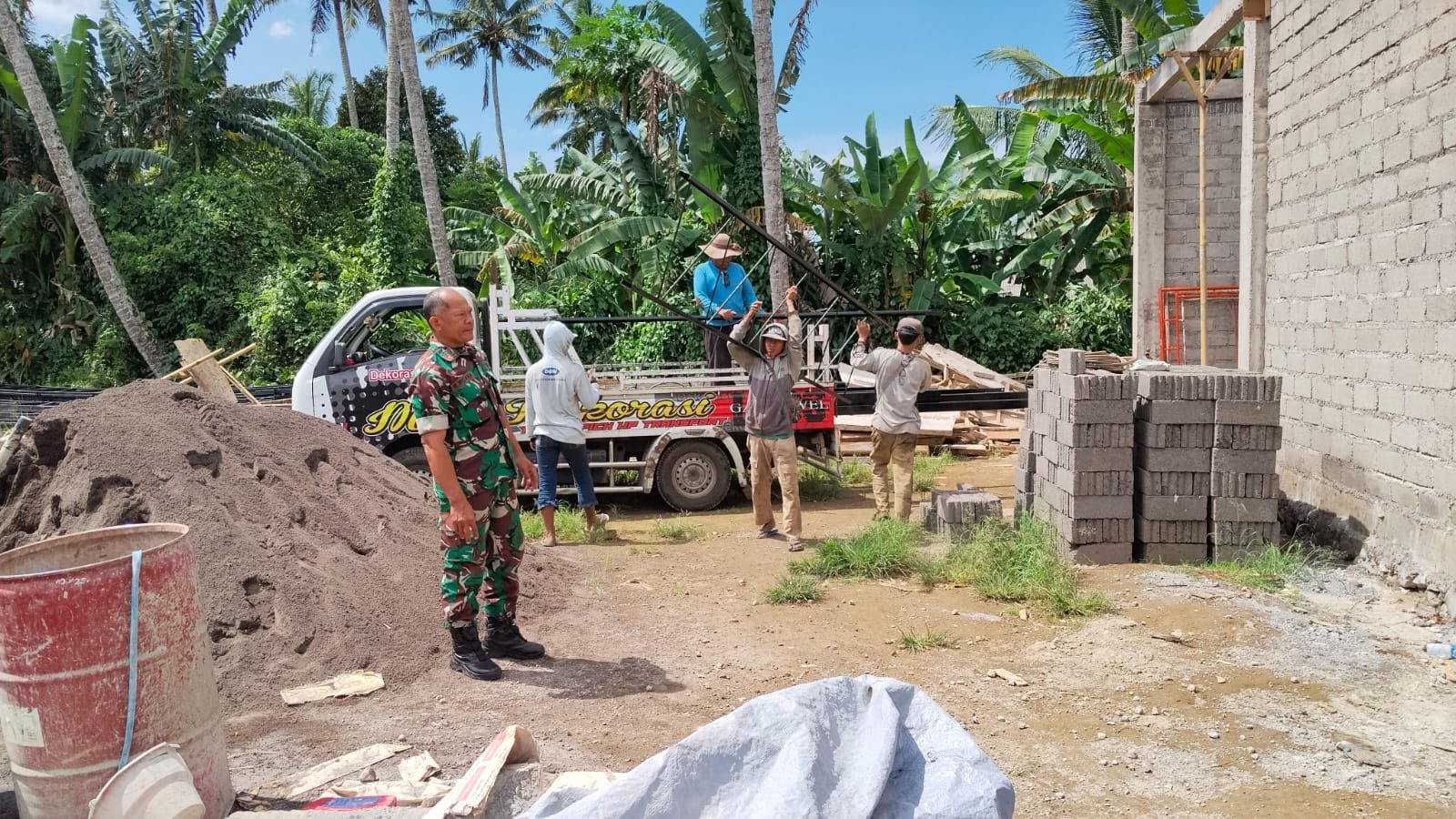 Dalam kunjungan ini, Danramil memantau perkembangan proyek sekaligus berdialog dengan para pekerja yang terlibat. Tujuan dari pengecekan tersebut adalah untuk memastikan bahwa proses pembangunan berlangsung dengan baik, aman, dan mematuhi standar yang telah ditetapkan.