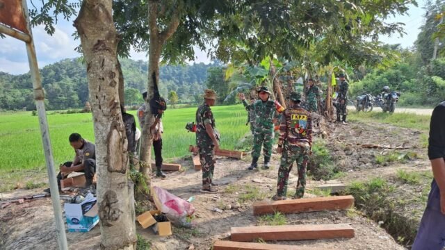 Jembatan yang sedang dikerjakan oleh personil Satgas dan masyarakat ini menjadi sasaran dalam program TMMD 125 Kodim 1417/Kendari dengan dipantau langsung oleh Kolonel Inf Herry Indriyanto selaku Dansatgas TMMD 125 Kodim 1417/Kendari, di Desa Awua Jaya, Kec. Asinua, Kab. Konawe, Senin (28/7).