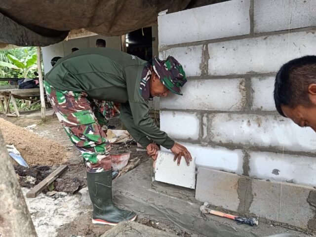 BARITO KUALA – Keteguhan seorang prajurit terlihat jelas dari sosok Pelda Gatot Suprayoga, anggota Satgas TMMD Ke-126 Kodim 1005/Barito Kuala. Dengan tangan cekatannya, ia menata satu per satu bata ringan untuk membentuk tugu kenang-kenangan di Desa Tumih, Kecamatan Wanaraya. Tugu ini bukan sekadar bangunan, melainkan simbol jejak pengabdian TNI di tengah masyarakat.