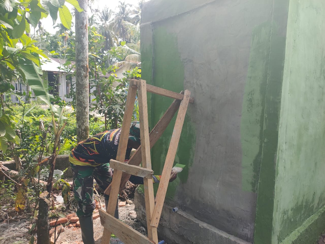 Menurutnya, pekerjaan yang kini dilakukan bukan sekadar memperindah tampilan, melainkan memastikan bangunan kokoh dan siap digunakan masyarakat. Pengecatan melindungi struktur, sementara pemasangan pipa menjadi jalur utama mengalirkan air bersih bagi warga.