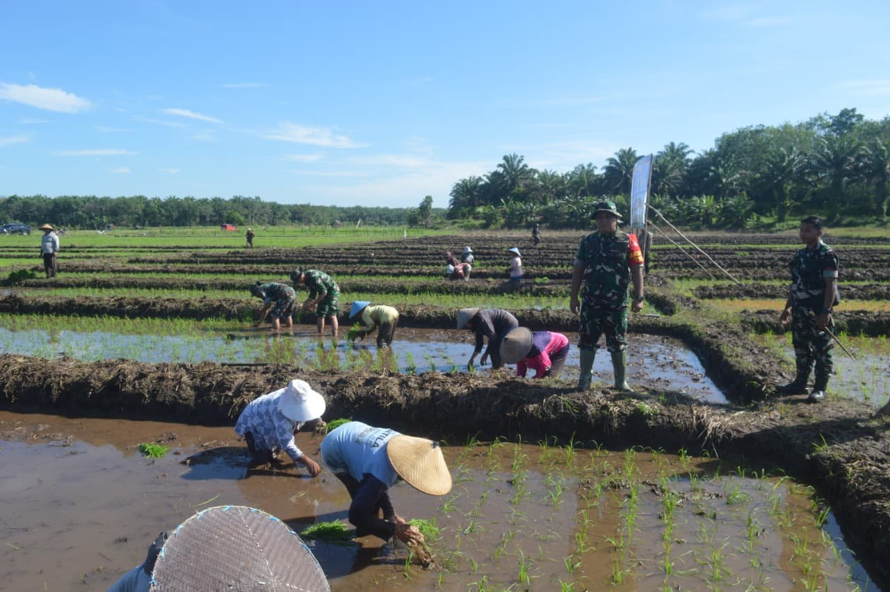 Dalam kegiatan tersebut, TNI bersama masyarakat melaksanakan penanaman padi secara bersama sebagai bentuk nyata upaya mendorong produktifitas dan memperkuat ketahanan pangan. Selain itu, juga dilakukan monitoring pemanfaatan drone sprayer serta penyuluhan kepada petani terkait penggunaan teknologi pertanian modern.