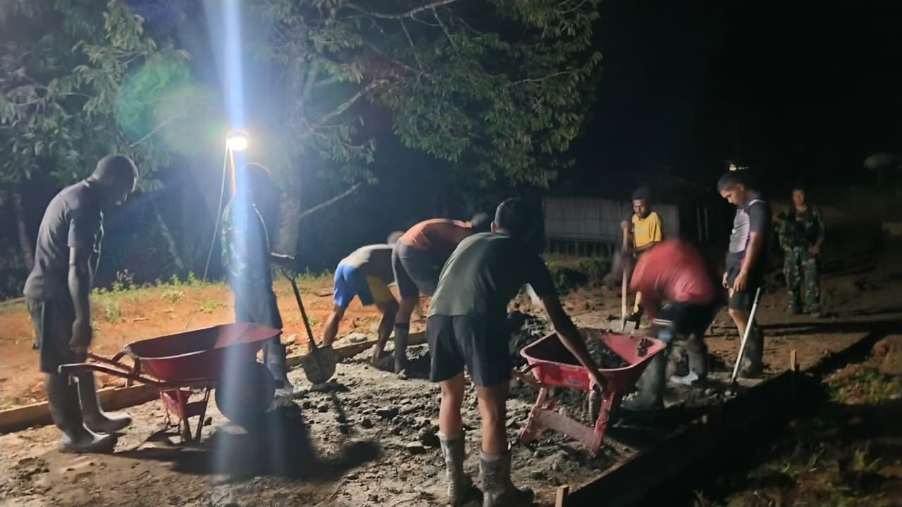 Tak hanya personel Satgas, masyarakat Kampung Waropko juga turut memberikan dukungan dengan menyediakan penerangan tambahan dan konsumsi malam bagi para prajurit. Bentuk dukungan ini menjadi wujud nyata kemanunggalan antara TNI dan rakyat dalam membangun desa.
