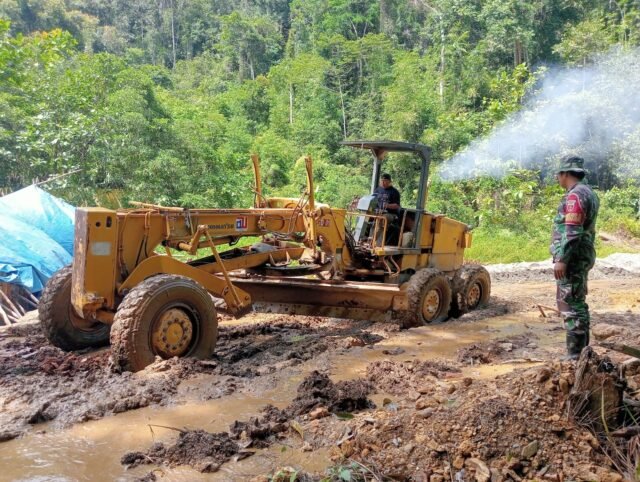 Dengan mengenakan sepatu bot penuh lumpur, Babinsa turun langsung ke lokasi, mengatur lalu lintas kendaraan proyek dan membantu sopir saat melintasi jalur yang licin dan berbahaya. Aksi itu menjadi bukti nyata dedikasi TNI dalam memastikan program pembangunan berjalan sesuai rencana.