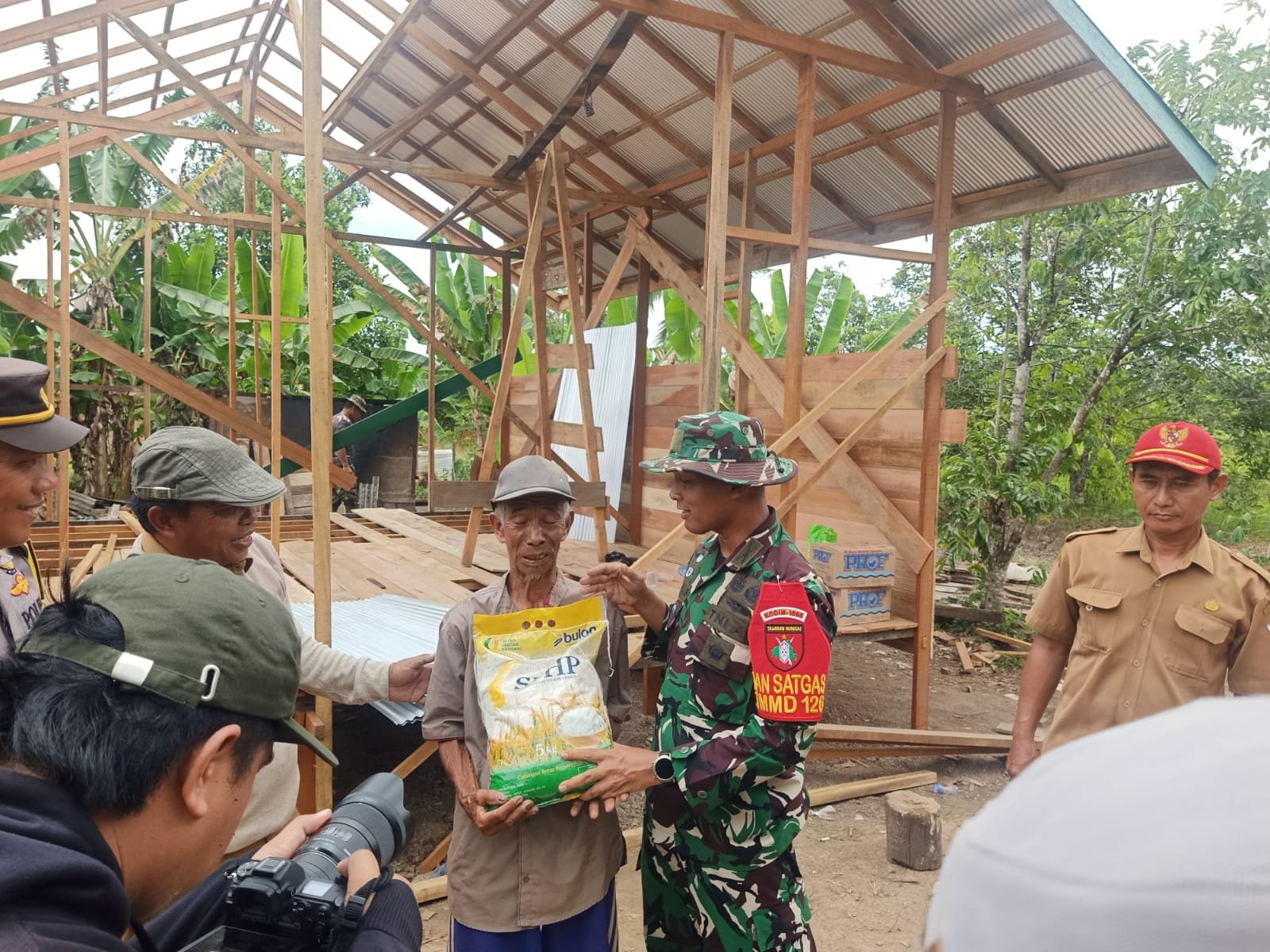 Penyerahan bantuan dilakukan saat Dansatgas meninjau progres pembangunan rumah yang kini tengah dibangun dari tahap awal. Bantuan ini diberikan sebagai wujud kepedulian TNI terhadap warga yang membutuhkan sekaligus untuk meringankan beban keluarga.