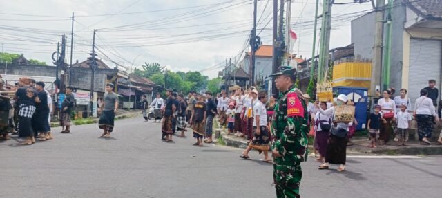 Ditengah riuh warga yang melaksanakan serangkaian prosesi pengabenan, Babinsa Paksebali Sertu Agus Pande bersama Bhabinkamtibmas dan pecalang terlihat siaga dan sigap untuk memastikan keamanan, ketertiban dan kelancaran prosesi seluruh jalannya pengabenan.