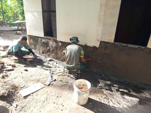 Dengan penuh semangat dan ketelitian, personel Satgas TMMD melanjutkan pengerjaan rumah milik Florianus, yang kini memasuki tahap plester dinding. Proses ini dilakukan secara hati-hati untuk memastikan hasil akhir yang rata, kokoh, dan tahan lama.