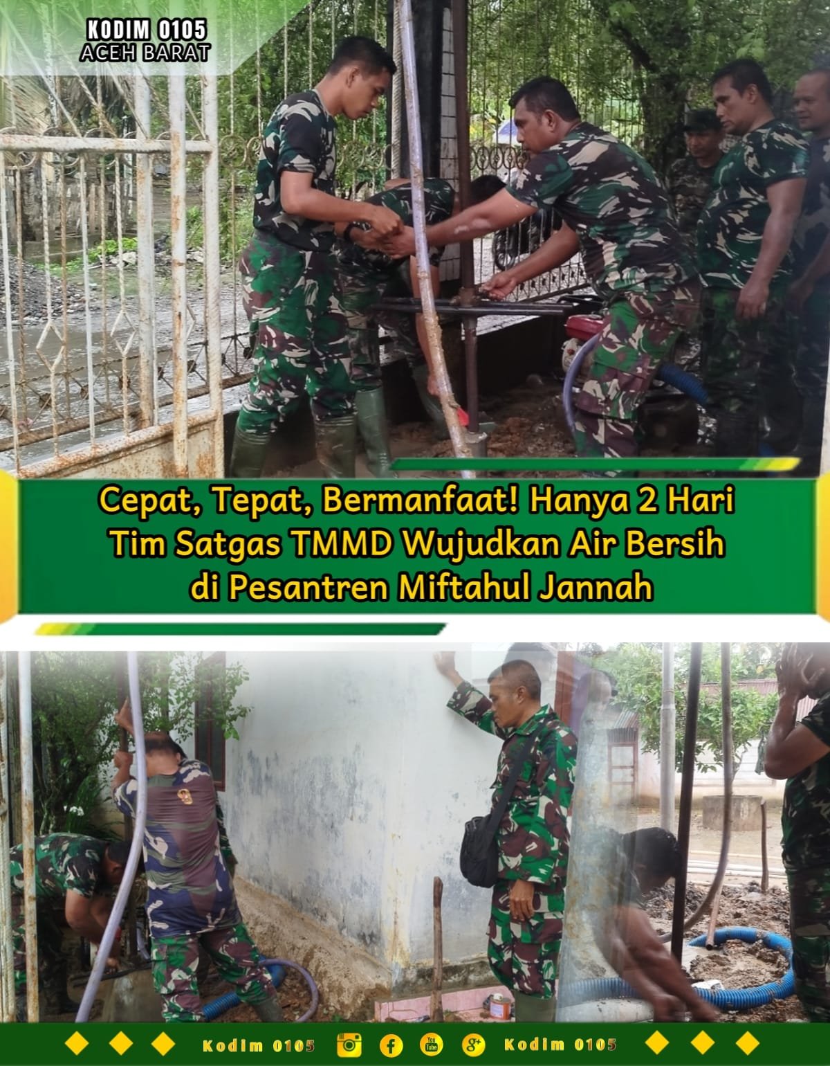 Program sumur bor ini merupakan bagian dari program unggulan KASAD Jenderal TNI Maruli Simanjuntak, M.Sc., yang terus digencarkan melalui TMMD.(0105).