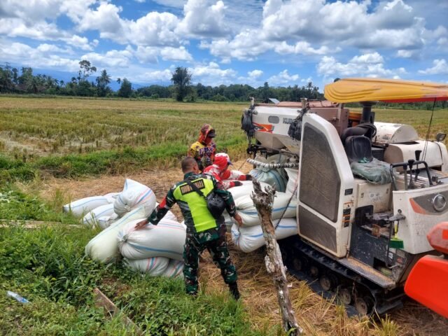 Nagan Raya – Dalam upaya mendukung program ketahanan pangan nasional, Babinsa Koramil 03/Senagan Timur, Kodim 0116/Nagan Raya, di bawah jajaran Korem 012/Teuku Umar, Serka Heriyanto, melaksanakan pendampingan panen padi menggunakan alat modern berupa traktor pemanen padi (Combine Harvester), Sabtu (11/10/2025).
