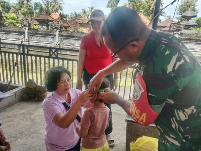 Bangli – Dalam rangka mendukung program pemerintah di bidang kesehatan masyarakat, khususnya kesehatan ibu dan anak, Babinsa Desa Peninjoan Koramil 1626-03/Tembuku Serka I Made Suarnika melaksanakan pendampingan dan pemantauan kegiatan Posyandu Balita yang bertempat di Balai Banjar Dinas Peninjoan, Desa Peninjoan, Kecamatan Tembuku, pada Selasa (11/11/2025).