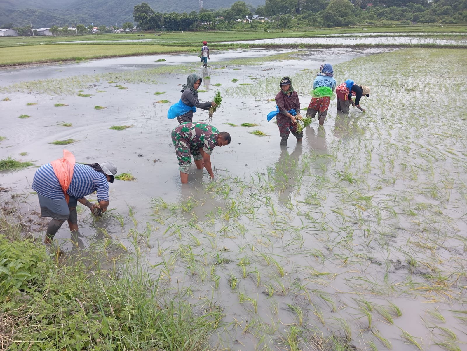 Dukungan TNI untuk Ketahanan Pangan: Anggota Koramil 1612-02/Reok Bantu Petani Menanam Padi