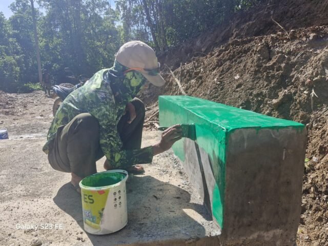 Tonggauna, 04 November 2025 – Setelah seluruh proses pengecoran dan plesteran rampung, deker ke-5 yang menjadi salah satu sasaran fisik TMMD 126 kini masuk tahap pengecatan akhir. Anggota Satgas TNI terlihat teliti dalam melakukan pengecatan agar hasil akhir tidak hanya kuat, tetapi juga terlindungi dari cuaca.