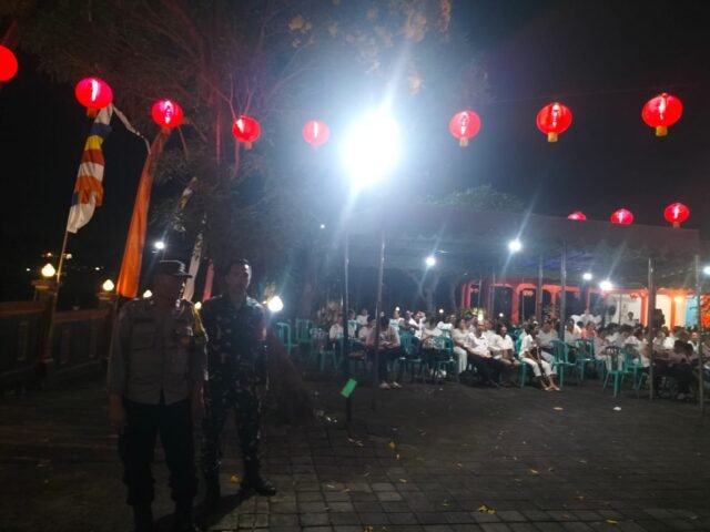 Klungkung,- Babinsa Semarapura Kauh Koramil 1610-01/Klungkung Koptu Wayan Suramaya bersama Bhabinkamtibmas dan anggota Polres Klungkung melksanakan kegiatan patroli di Vihara Darma Ratna, Semarapura Kauh, Kecamatan/Kabupaten Klungkung, Selasa ( 14/10/25 ).