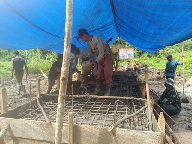 Di tengah cuaca panas, para prajurit dan warga tetap antusias melanjutkan pekerjaan fisik yang menjadi bagian penting dari sasaran TMMD tahun ini. Mereka bekerja sama mempersiapkan adukan, menuangkan cor beton, hingga meratakan permukaan deker agar hasilnya maksimal.