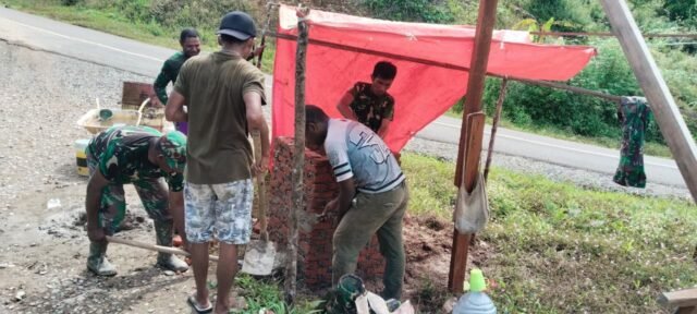 Pekerjaan dilakukan secara gotong royong, di mana personel Satgas dan warga setempat saling bahu-membahu menyiapkan material, mengaduk semen, dan menyusun bata dengan teliti. Proses tersebut dilakukan agar tugu tampak kokoh dan estetis sebagai ikon pembangunan di wilayah Waropko.