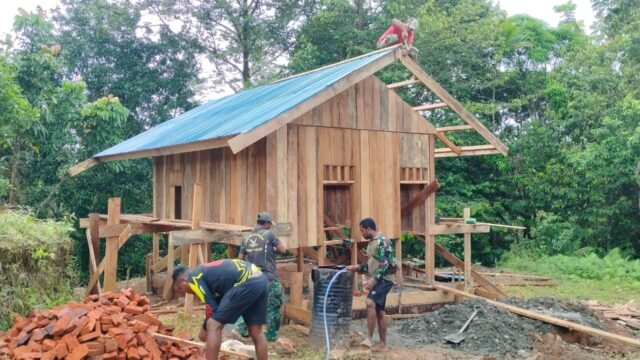 Pada Selasa (28/10/2025), personel Satgas dan masyarakat setempat bekerja bahu membahu mempercepat pembangunan rumah bantuan tersebut. Meski cuaca tidak menentu, semangat gotong royong tetap menyala, mencerminkan kemanunggalan antara TNI dan rakyat.