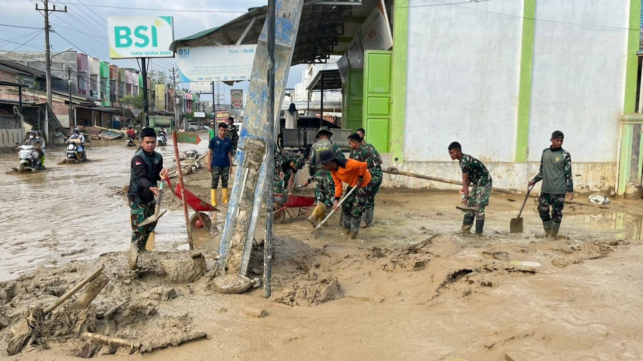 Sejumlah prajurit Korem 012/TU dikerahkan ke wilayah terdampak guna melaksanakan karya bakti pembersihan lingkungan, sekolah, tempat ibadah, serta fasilitas umum yang terdampak bencana. Kegiatan ini dilakukan secara gotong royong bersama masyarakat setempat sebagai bentuk sinergi antara TNI dan rakyat.