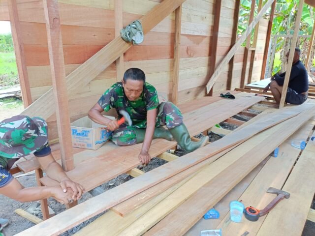 BARITO KUALA – Satu demi satu bagian rumah milik Kai Salamun di Desa Tumih, Kecamatan Wanaraya, kini mulai berdiri kokoh. Berkat kerja keras Satgas TMMD Ke-126 Kodim 1005/Barito Kuala bersama masyarakat setempat, impian memiliki rumah layak huni sebentar lagi akan menjadi kenyataan.