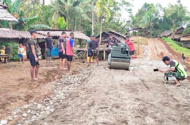 Boven Digoel – Di bawah teriknya matahari dan medan yang cukup menantang, semangat gotong royong antara prajurit TNI dan masyarakat terus menyala di lokasi TNI Manunggal Membangun Desa (TMMD) ke-126 Kodim 1711/Boven Digoel. Pada Minggu (12/10/2025), anggota Satgas TMMD bersama warga Kampung Waropko, Distrik Waropko, bahu membahu melaksanakan pengerasan jalan yang kini telah mencapai progres sekitar 10 persen.