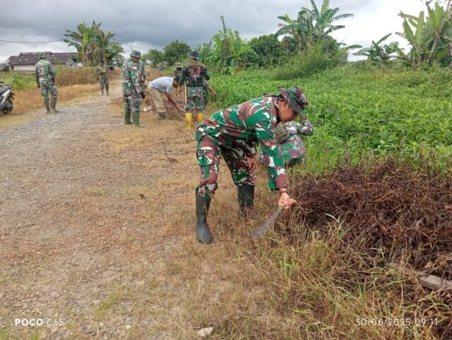 HULU SUNGAI UTARA – Dalam rangka mengantisipasi potensi bencana Banjir, Angin Puting Beliung, dan Tanah Longsor (BATINGSOR), Koramil 1001-10/Babirik Kodim 1001/HSU melaksanakan kegiatan Karya Bakti pembersihan lingkungan di Desa Sungai Durait Hilir, Kecamatan Babirik, Kabupaten Hulu Sungai Utara. Jumat (14/11/2025).