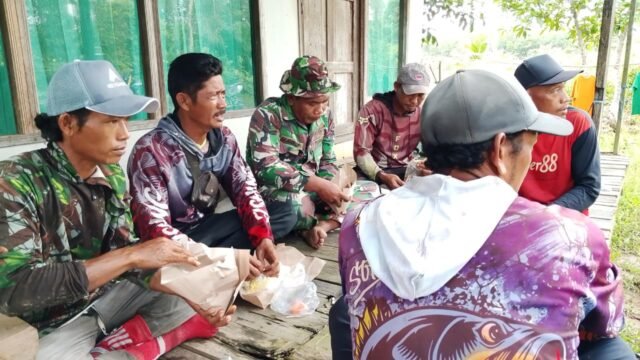 BARITO KUALA – Suasana kebersamaan terlihat di lokasi pelaksanaan TMMD Ke-126 Kodim 1005/Barito Kuala di Desa Tumih, Kecamatan Wanaraya. Saat waktu istirahat siang tiba, anggota Satgas TMMD bersama warga tampak duduk melingkar di teras rumah warga, menikmati makan siang sederhana bersama, Sabtu (01/11).