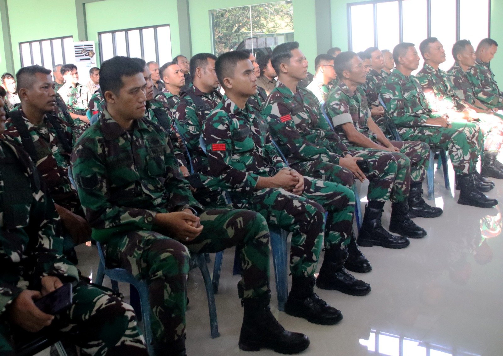 HULU SUNGAI SELATAN – Guna menjaga disiplin serta upaya pembinaan personiel, usai melaksanakan upacara Kesadaran Nasional 17 an, Letkol Inf Putut Januarto Komandan Kodim 1003/Hulu Sungai Selatan (HSS) memberikan Jam Komandan yang diikuti seluruh prajurit dan PNS yang berlokasikan di Aula Manunggal Makodim 1003/HSS Jl. A. Yani Kelurahan Kandangan Kabupaten HSS. Jumat (17/10/25)