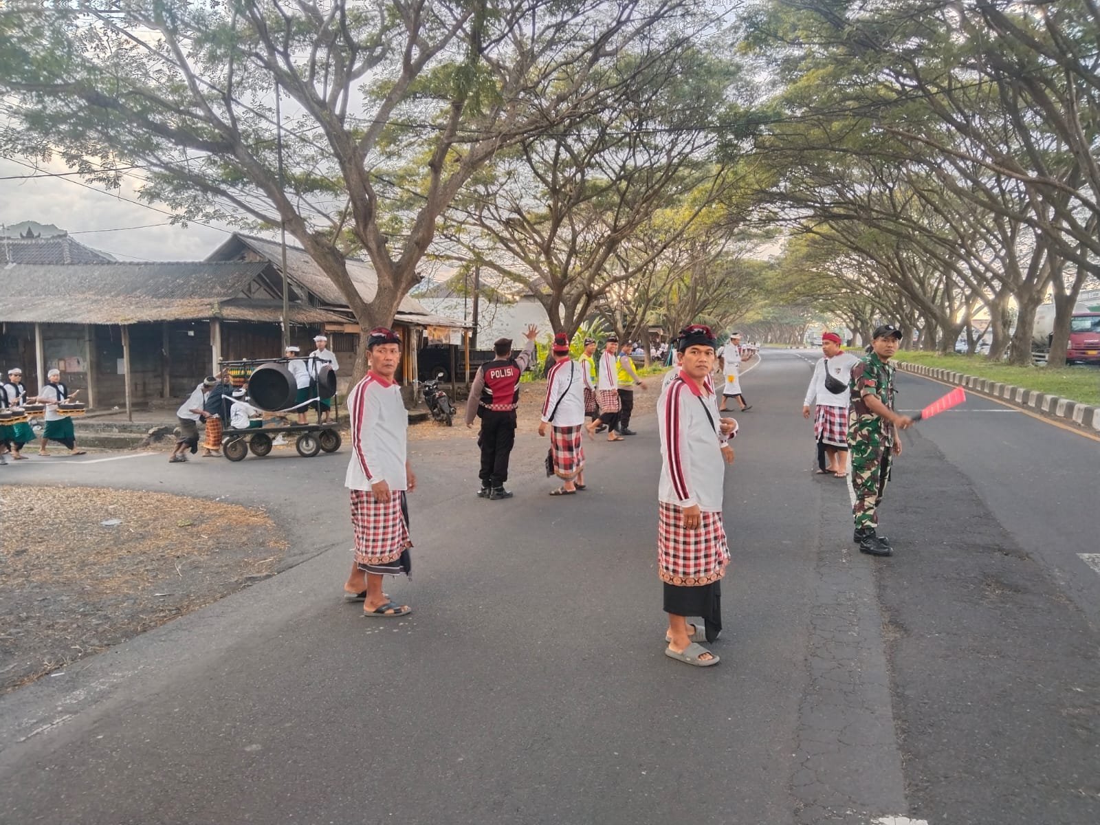 Klungkung,- Selalu hadir dan memastikan keamanan setiap kegiatan di wilayah binaan, Babinsa Dawan Kelod Koptu Nyoman Suartawan melaksanakan pengawalan upacara ngerorasin ( ngeliwet nguyeg, nganyud dan nyegare gunung ), Jumat ( 18/07/25 ).