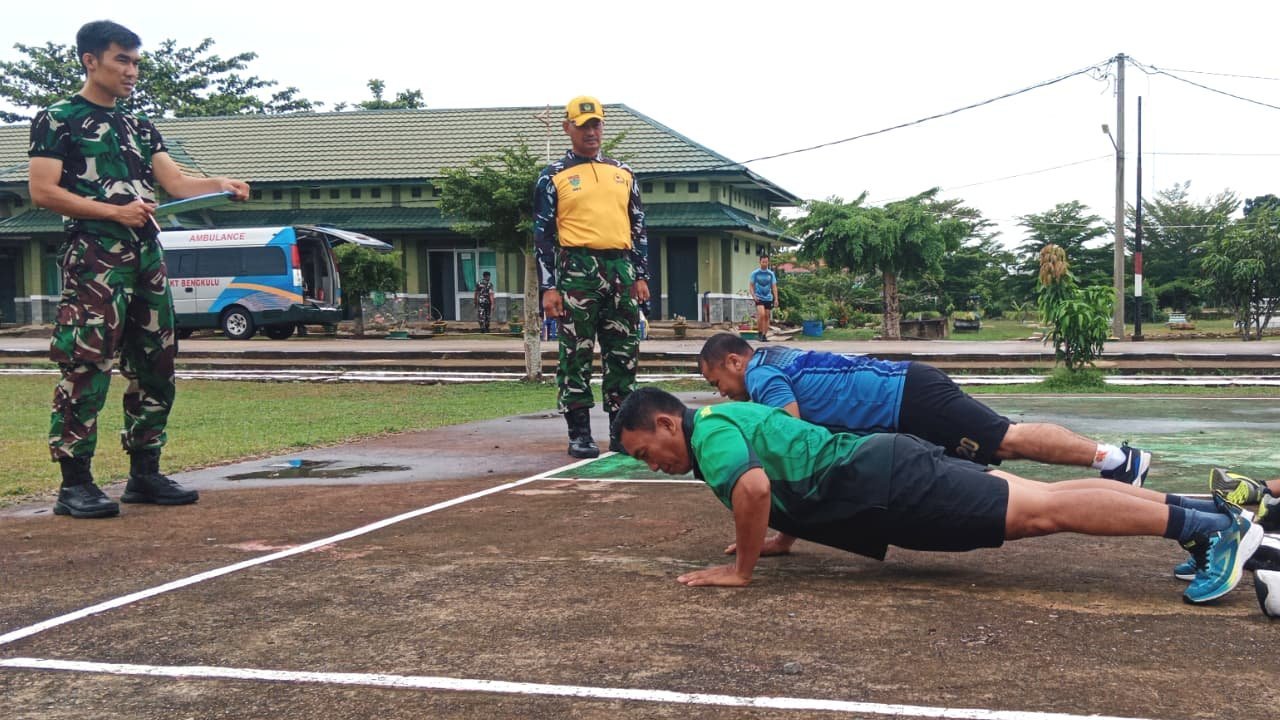 Pelaksanaan tes kesegaran jasmani di Ikuti oleh anggota staf, koramil jajaran, dengan dibagi dua gelombang.