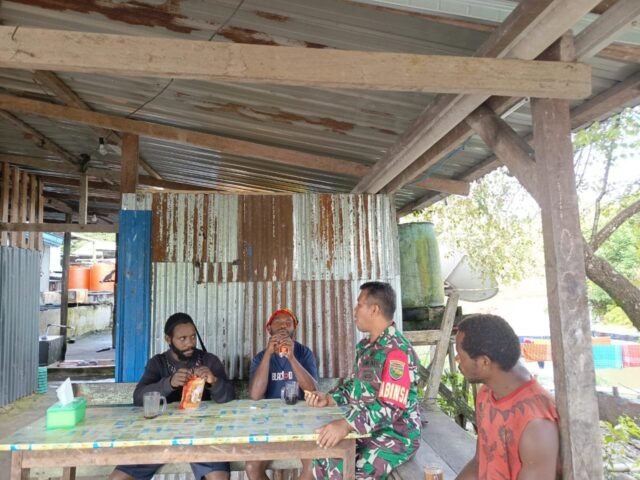 Siriwo – Babinsa Koramil 1705-07/Siriwo,Serka Alamsyah melaksanakan Komunikasi Sosial (Komsos) bersama warga masyarakat (bpk Pelik Dogomo) di kampung unipo,distrik Siriwo, Kab.Nabire,Provinsi Papua Tengah.