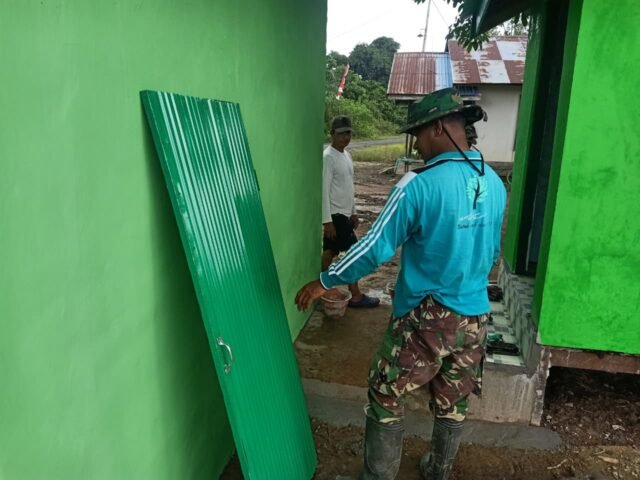 “Hari ini anggota Satgas bersama masyarakat mulai memasang pintu pada bangunan WC. Ini menandakan progres pembangunan sudah hampir rampung. Kami berharap dalam waktu dekat bisa segera digunakan oleh warga,” ujarnya.