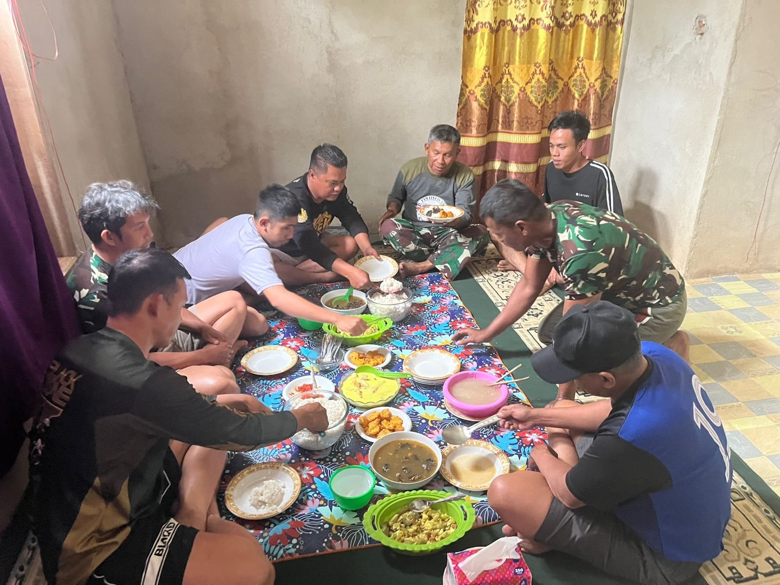 Kegiatan makan bersama ini tidak hanya menjadi ajang melepas lelah, tetapi juga mempererat hubungan emosional antara TNI dan masyarakat.