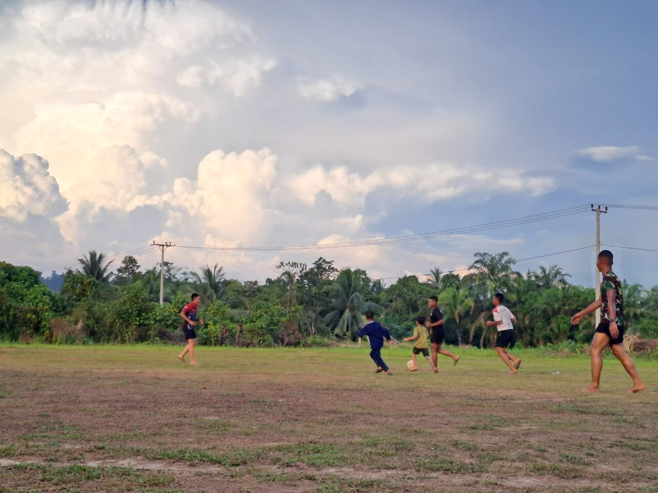 Desa Jamut, Barito Utara – Suasana penuh tawa dan kegembiraan mewarnai lapangan sepak bola Desa Jamut, Kecamatan Teweh Timur, Kabupaten Barito Utara, saat anggota Satgas TNI Manunggal Membangun Desa (TMMD) ke-126 Kodim 1013/Muara Teweh meluangkan waktu bermain sepak bola bersama anak-anak desa, Senin (03/11/2025).