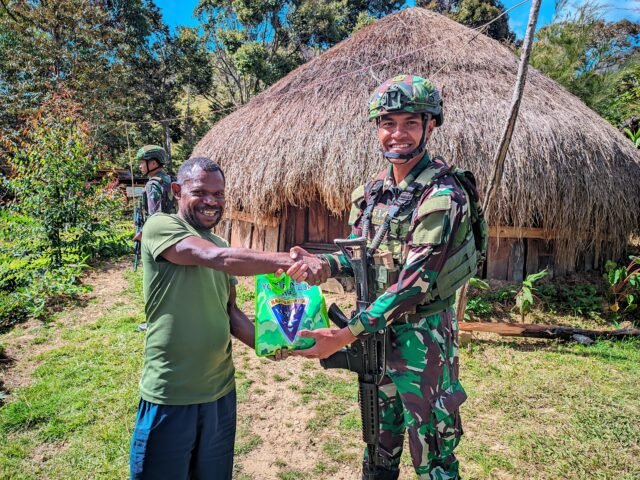 LANNY JAYA – Sebagai pelindung, pengayom dan pelayanan bagi masyarakat, Personel Satgas Yonif 614/RJP Pos Malagayneri yang dipimpin Wadanpos Letda Inf Zandona rutin melaksanakan Komsos di wilayah penugasan, seperti yang dilaksanakan kali ini yaitu berkunjung kerumah Bapak Tutius Kogoya (52) selaku Sekertaris Distrik yang berada di desa Lowanom, Distrik Malagayneri, Kabupaten Lanny Jaya, Papua Pegunungan, Jum’at (04/7/2025).